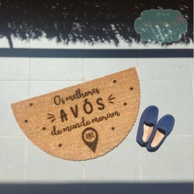 Tapete para porta de entrada, formato meia lua e personalizado com frase à escolha.